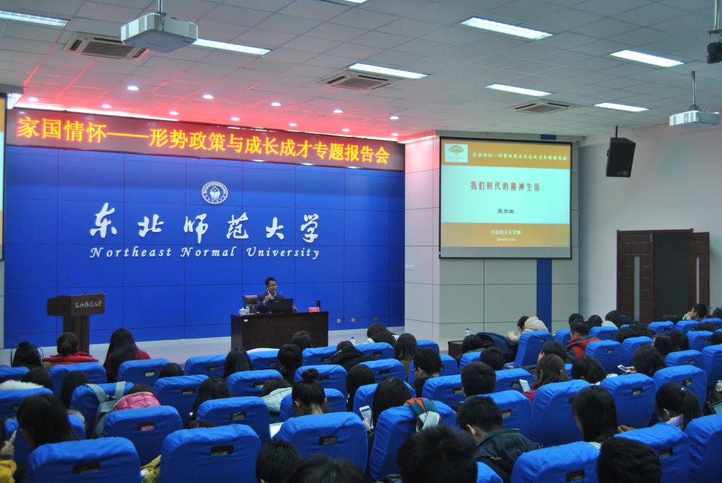 部长庞立生老师作了题为“我们时代的精神生活”的专题报告。全校近400名师生聆听了本场报告。