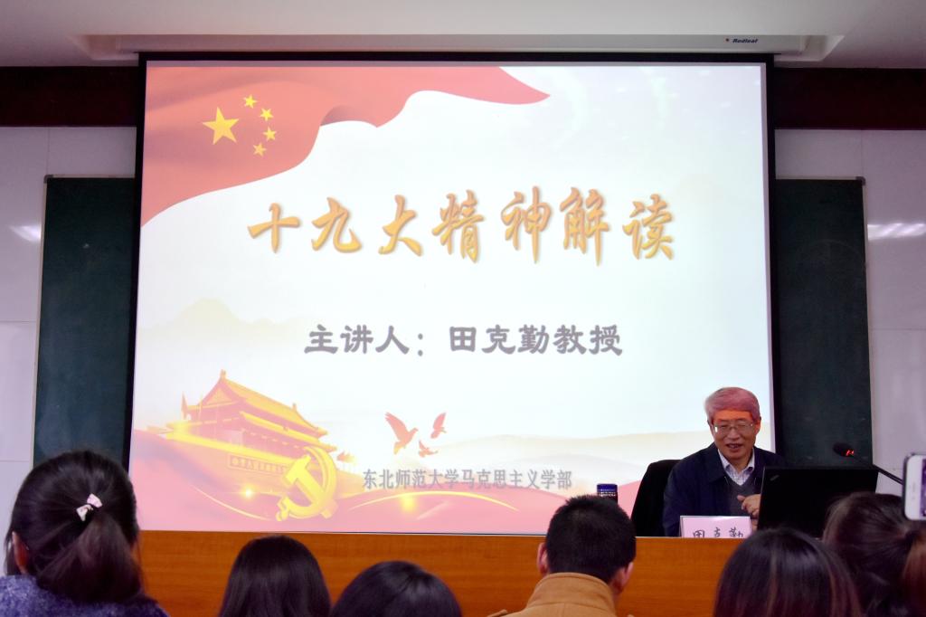 第一时间邀请全国马工程首席专家田克勤教授做题为“十九大精神解读”的专题报告会。田克勤教授从新时代我国社会发展的历史方位、新时代中国共产党的历史使命、习近平新时代中国特色社会主义思想和基本方略、全面建设社会主义现代化国家新的历史征程四个维度展开,对十九大报告进行了系统的导读与深入阐释。除组织师生现场聆听讲座之外,四爱视频