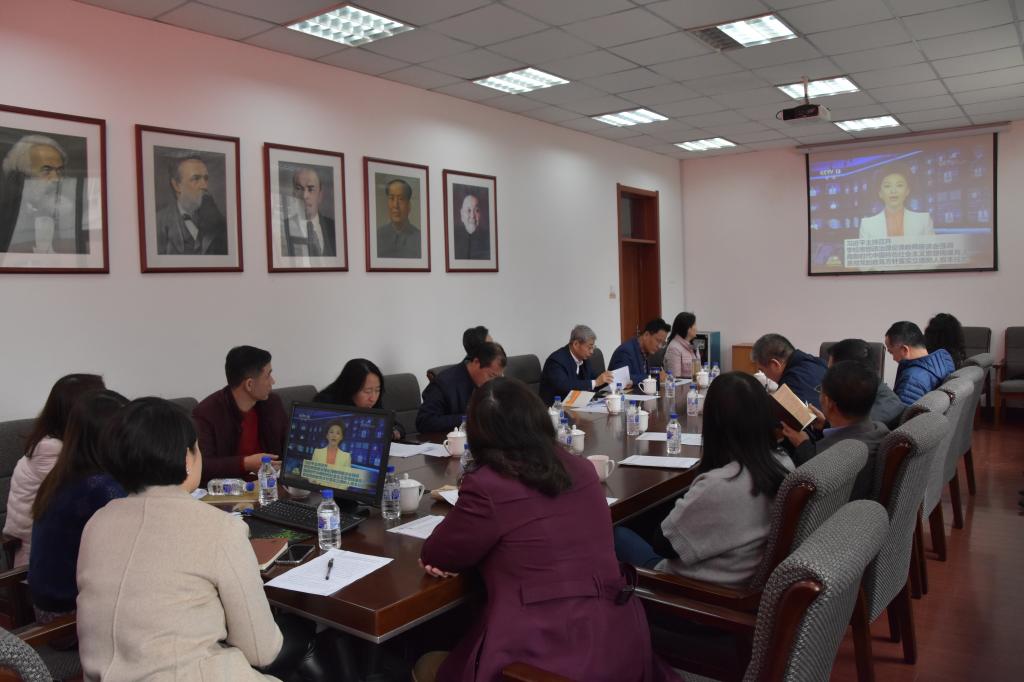教师首先观看了中央电视台关于学校思想政治理论课教师座谈会的视频报道。随后,与会教师就会议的召开和深入贯彻落实总书记的讲话精神谈了自己的体会。