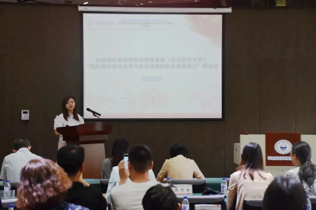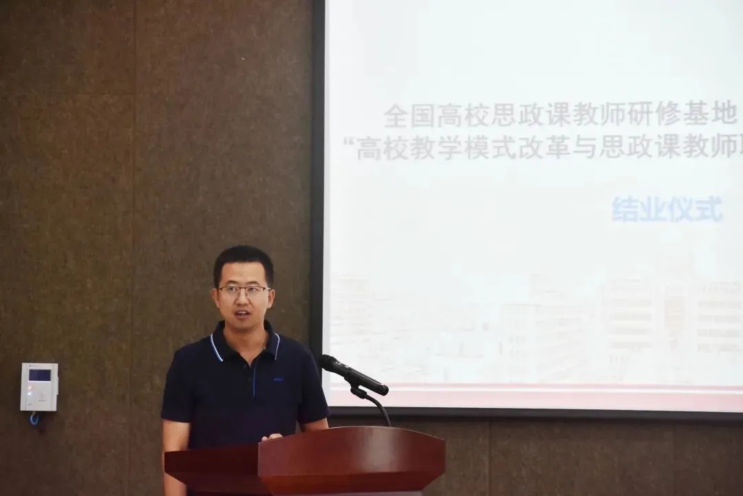 副部长李爽在结业仪式上致辞。她回顾本次培训的全程强调,作为思政课教师,要在思政课教学中紧紧抓住理论着力点,立足新时代以科学理论指导思政课教学;要加深对思政课教学体系化的理解,通过对教学经验的总结、教学技巧的运用和教学模式的创新不断提升思政课的实效性;要践行“尊重的教育”“创造的教育”理念,尊重教育、教师、学生,激发教育主客体的创造性,提升育人育才的效果。最后,她表达了对大家的美好祝愿。