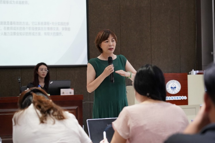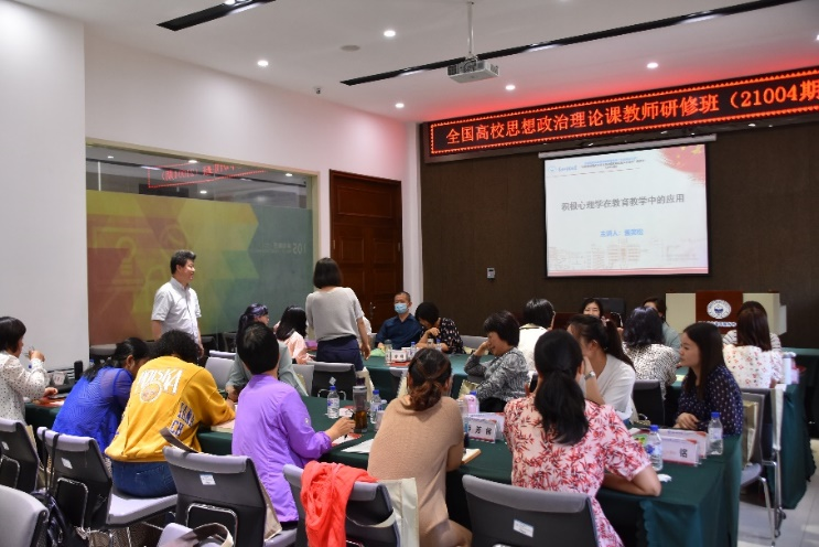 我校心理学院院长盖笑松教授作了题为“积极心理学在教育教学中的应用”的专题报告。他创新授课方式,把学员分组,以趣味扑克、飞行棋等小组游戏为切入点,让学员们在讨论交流中分辨“勇敢、节制、智慧、超越”等心理品质。他通过体验式、沉浸式的课堂,帮助学员深入认识积极心理学在教学中的实用价值,为思政课教学教法创新提供了思路启发。
