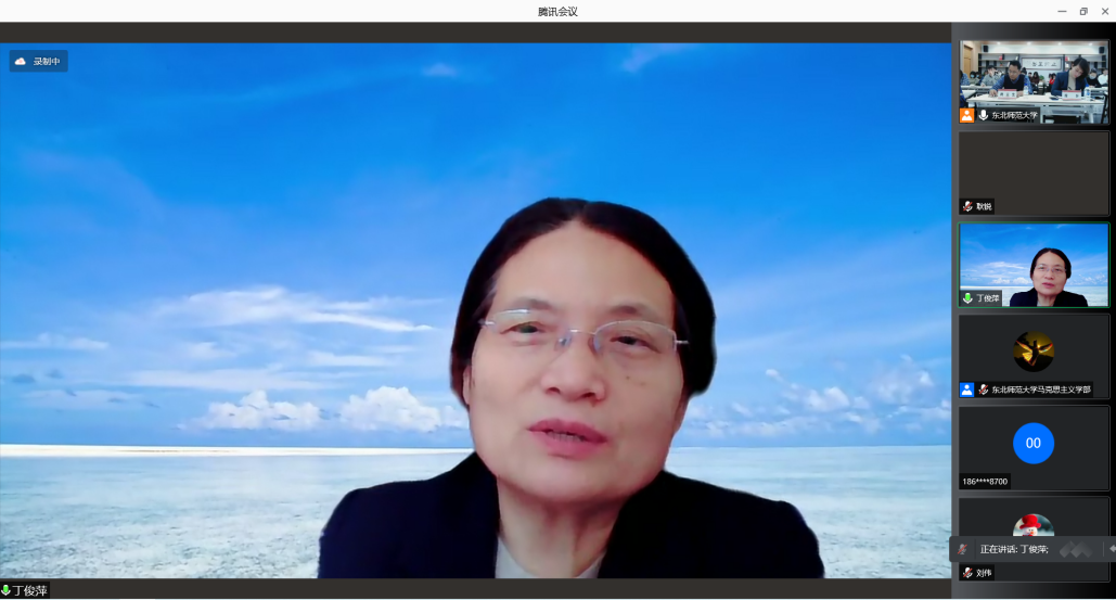 丁俊萍教授以“人民民主和自我革命:跳出历史周期率的两个答案及其逻辑关系”为题进行了阐述。她指出,党的十九届六中全会把“坚持自我革命”概括为党百年奋斗的十条历史经验之一。回顾党的百年历史征程,自我革命是中国共产党永葆青春活力的强大支撑。她强调,人民民主要和自我革命相结合,内外互补,要加强党的长期执政能力建设,保持党的先进性和纯洁性,推进全过程民主,虚心接受人民群众监督,才能使党真正跳出治乱兴衰的“历史周期率”,不断实现自我超越,取得新的胜利和辉煌。