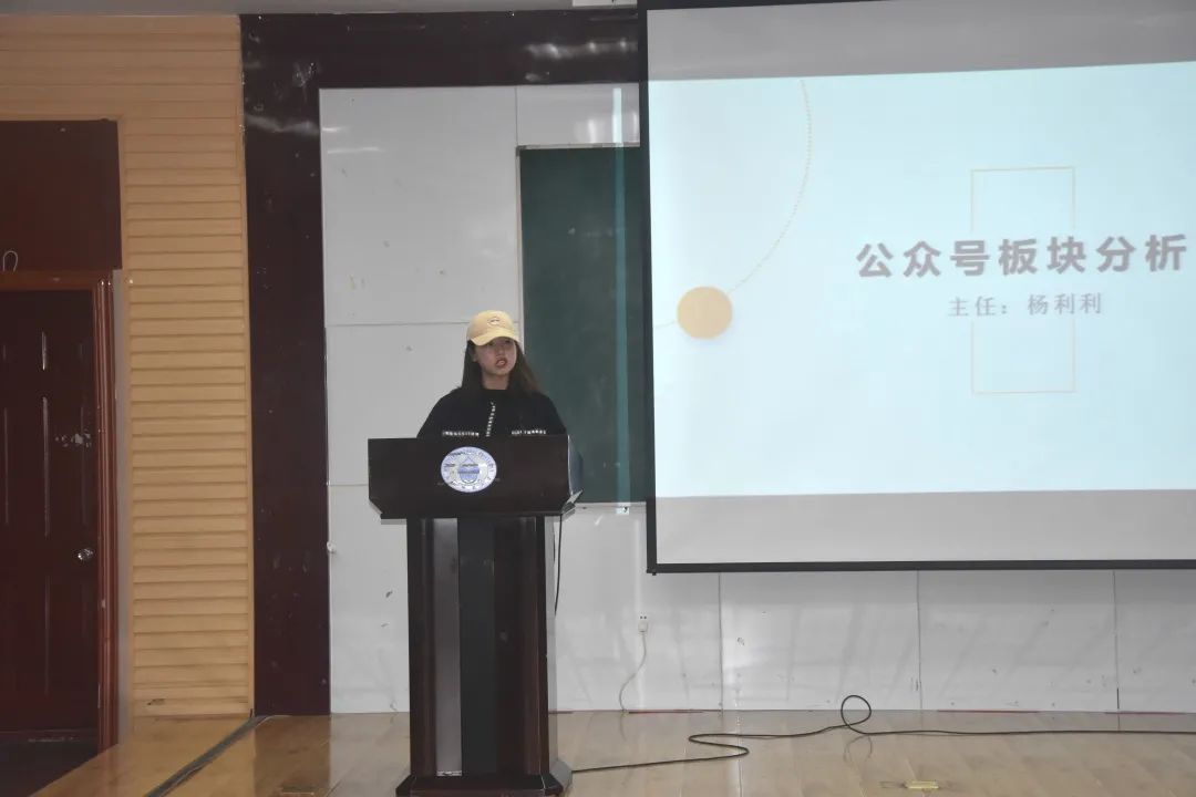 新媒体中心负责人李锦晔同学介绍了新媒体中心的组织架构,并详细讲解了新媒体中心各部门的具体职责。杨利利同学对马部公众号各板块内容做出了相关介绍。白林玉同学则带领全体成员具体了解了公众号的投稿要求,激励大家积极参与公众号建设。
