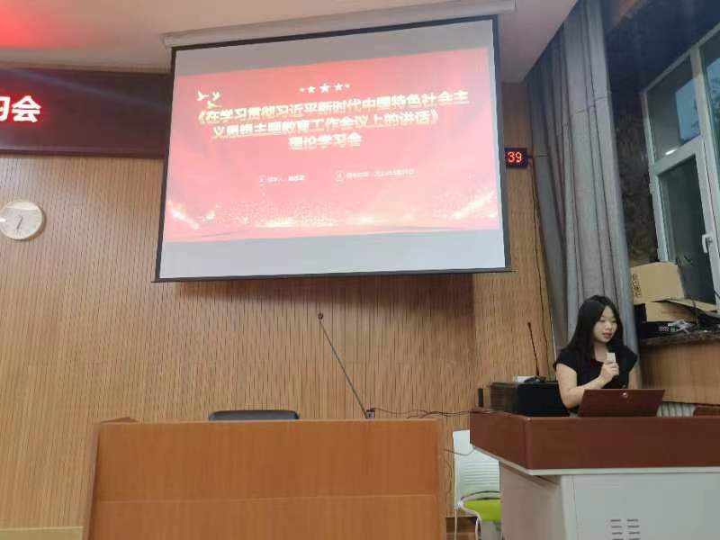 329教室开展《在学习贯彻习近平新时代中国特色社会主义思想主题教育工作会议上的讲话》理论学习会。会议由第二支部宣传委员鲍思蕊主持并领学。