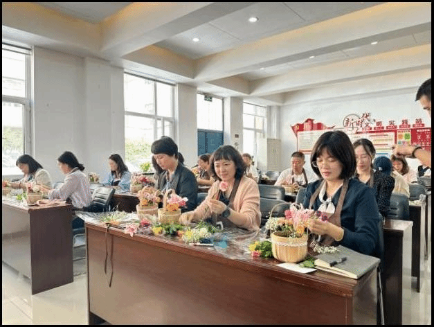 工会妇委会联合长春市朝阳区桂林街道自由大路社区开展“鲜花凝深情、芬芳送祝福”教师节主题插花活动。