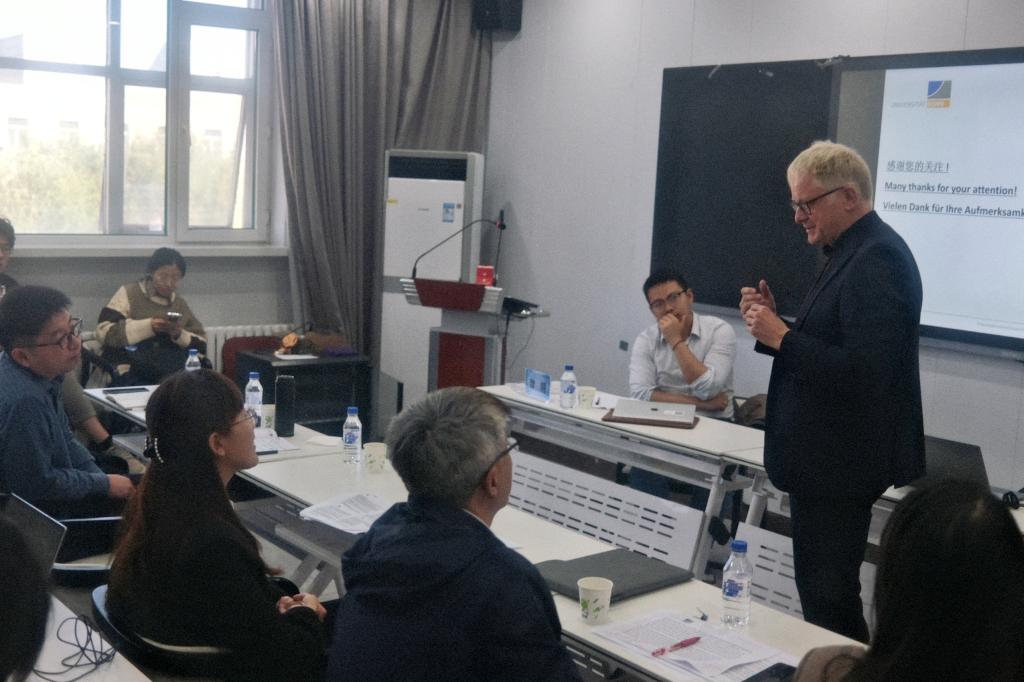 在研讨环节,贺腾副研究员首先从理性和道德之间的关系,道德构成主义的古代思想来源,以及对科斯嘉德的道德构成主义存在的问题等三方面总结了Horn教授的发言。随后,他对亚里士多德的幸福论与康德自主性的关系及实在论与建构论的关系展开提问。刘静副教授基于当代道德构成主义的前沿理论,分别从道德构成主义的概念和思想脉络,科斯嘉德道德构成主义论证的问题以及道德构成主义面临的客观性诘难三方面进行了评议。罗兴刚副教授、李守利副教授、刘金山副教授以及在场学生分别从形而上学、语言和文化差异、自我同一性、目的论和大卫·以诺的批评等角度展开提问。Horn教授对所提问题进行了解答,引用经典并提出独到的见解,引发了在场师生的掌声。
