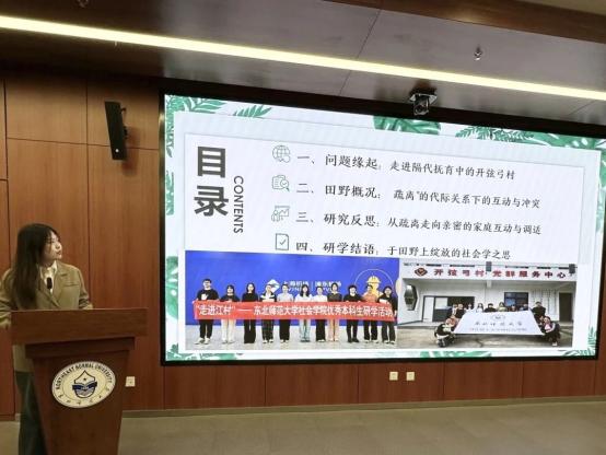 在家庭婚姻方面,赵星同学针对江村“两头婚”现象进行了调研分析,从选题依据、调查对象方法、调研过程、调研成果四方面,阐述了“两头婚”的现状、特点、原因、效应及启示。