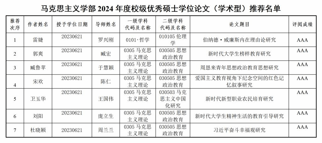 四爱视频 2024年度校级优秀博士、硕士学位论文推荐名单公示如下,公示期:2024年4月22日至2023年4月28日。如有异议,请于2024年4月28日16:00前向主管研究生工作副部长段老师反映。电子邮箱:[email protected]