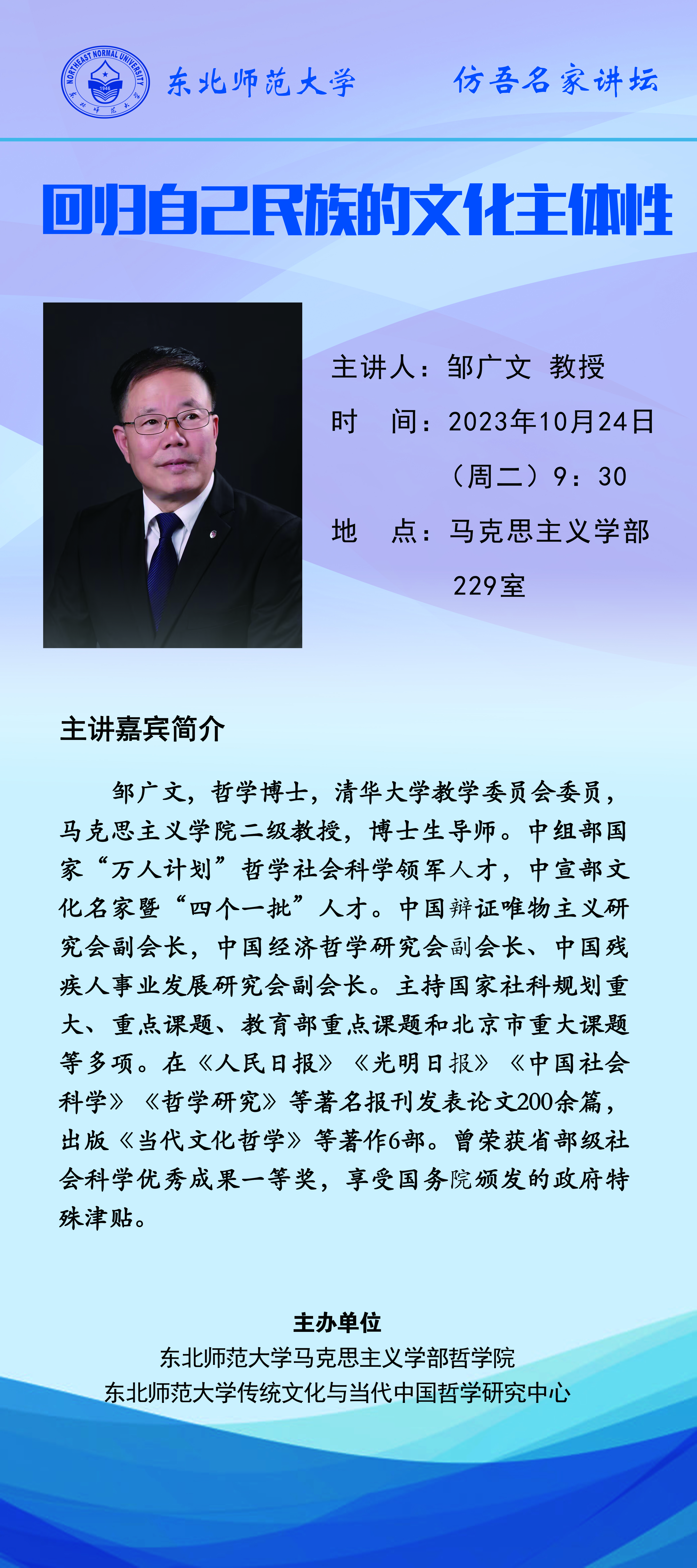 讲座预告:回归自己民族的文化主体性