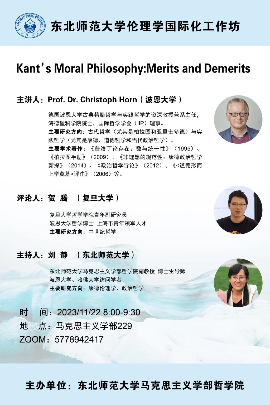 讲座预告:Kant's Moral Philosophy:Merits and Demerits