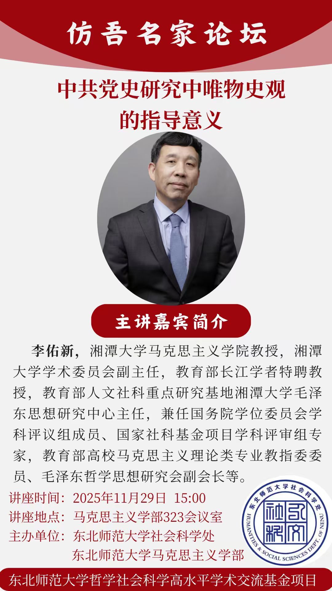 讲座预告:中共党史研究中唯物史观的指导意义