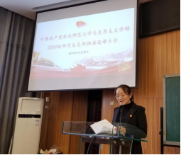 本次支部选举大会由刘咏梅老师主持。首先,刘老师宣布本次选举大会共有有表决权的党员53名,因事因病请假3名,实到会党员50名,超过应到会有表决权人数的4/5,会议有效。随后大会审议通过了党支部选举办法,监票员、计票员名单和支部委员会委员候选人名单。通过差额选举,以及现场投票、计票,产生了由刘咏梅、王擎、于诗榕、李镕、李敬、国珈畅、李学良和常丹丹8名同志组成的2019级研究生党支部委员会。
