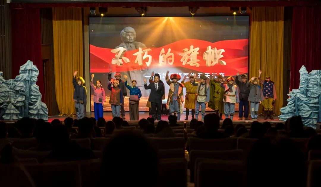 10月19日晚上,在干部学院教学楼一楼阶梯教室,情景教学《不朽的旗帜——杨靖宇将军的五天五夜》震撼上演。该剧生动讲述了杨靖宇将军殉国前五天五夜的悲壮感人故事,充分展现了以杨靖宇将军为代表的东北抗联将士的伟大事迹和可贵精神。逼真的舞美道具、生动的舞台表演,让学员们如同置身于80多年前的白山密林之中,亲眼目睹了杨靖宇将军在艰苦环境下的顽强抗争。杨靖宇将军的英勇事迹和崇高精神,深深打动了每一位师生,激励着大家在新时代继续传承和弘扬东北抗联精神。