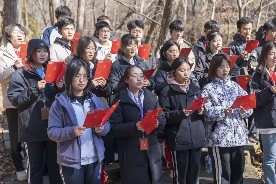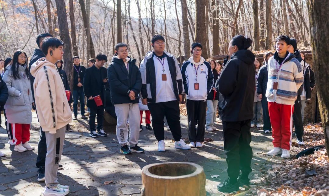 10月20日上午,师生怀着崇敬与期待之情,在大巴车上共同传唱《露营之歌》,前往集安市老岭抗日根据地现场教学点。抵达后,学员们踏上了抗联小路。这条蜿蜒的山路,承载着无数抗联英雄的足迹,每一步都在诉说着那段可歌可泣的历史。