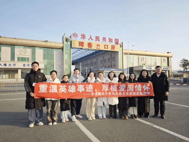 中共珲春市委党校教师金玲带领师生们依次前往吴大澂纪念广场、张鼓峰事件纪念馆、防川龙虎阁“一眼望三国”观景台、珲春口岸等地开展现场教学。通过回顾中国近代史签订的不平等条约,深刻理解加强边防、海防、空防建设、坚决捍卫领土主权和海洋权益的重要意义;师生瞻仰吴大澂雕像,感悟“寸土寸心”的爱国情怀,重温吴大澂临危受命赴东北堪界巡边过程,了解吴大澂重立“土字碑”、收回黑顶子山、争得图们江口出海权的英雄壮举。